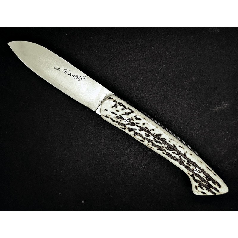 Le Thiernois plein manche. Lame inox 14C28. Platines inox. Ressort ciselé avec butée. Visseries personnalisées.