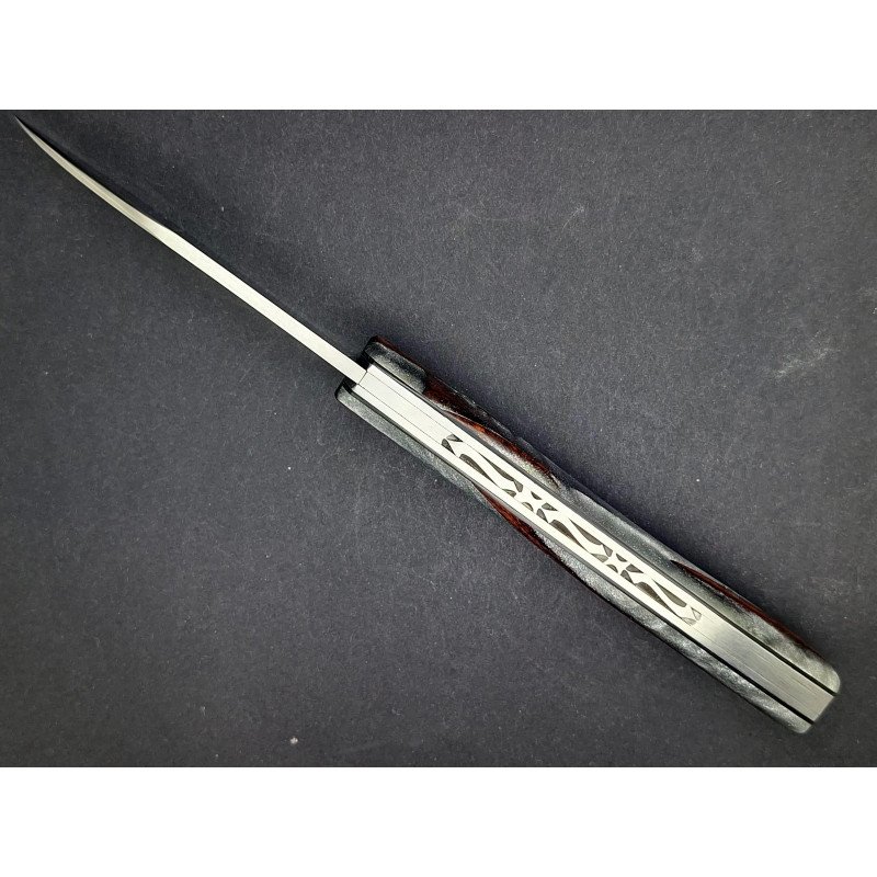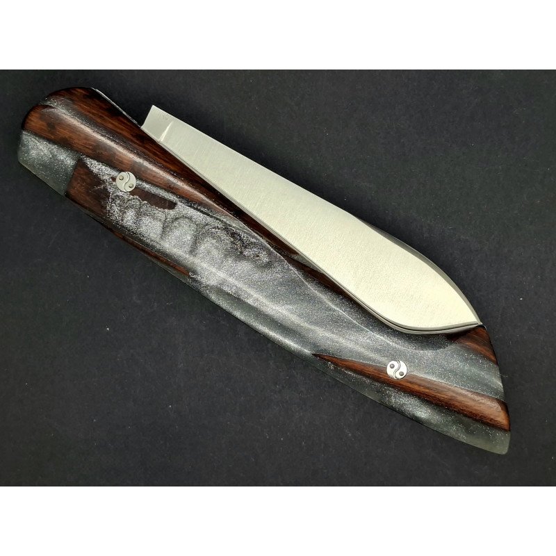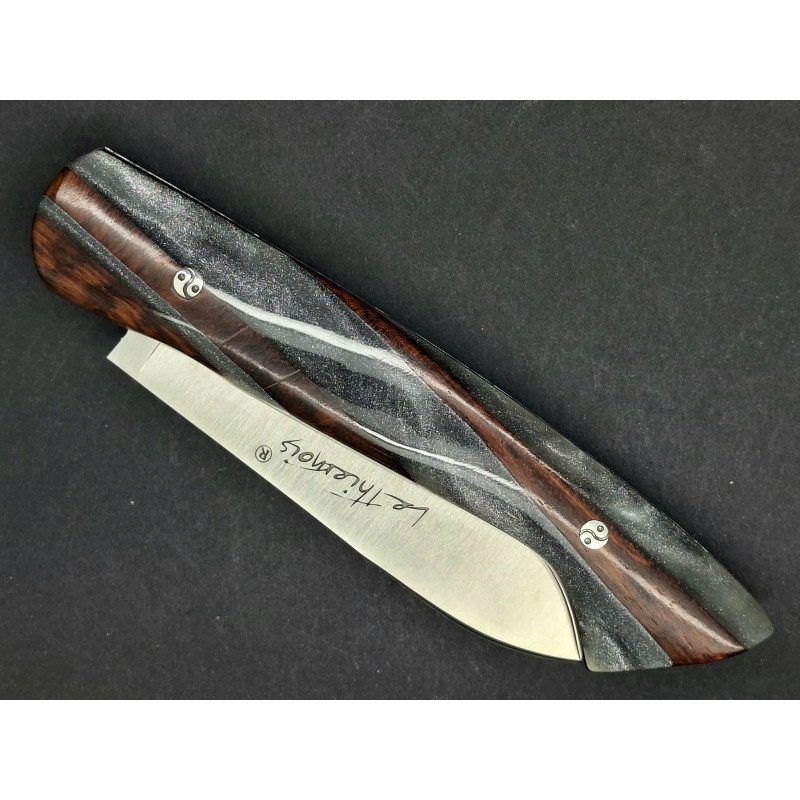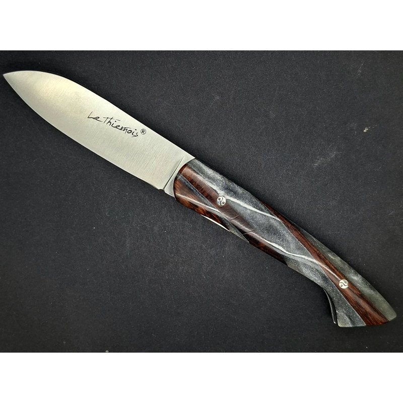 Le Thiernois plein manche. Lame inox 14C28 . Platines inox. Ressort ciselé avec butée. Visseries personnalisées. Manche "hybride" :